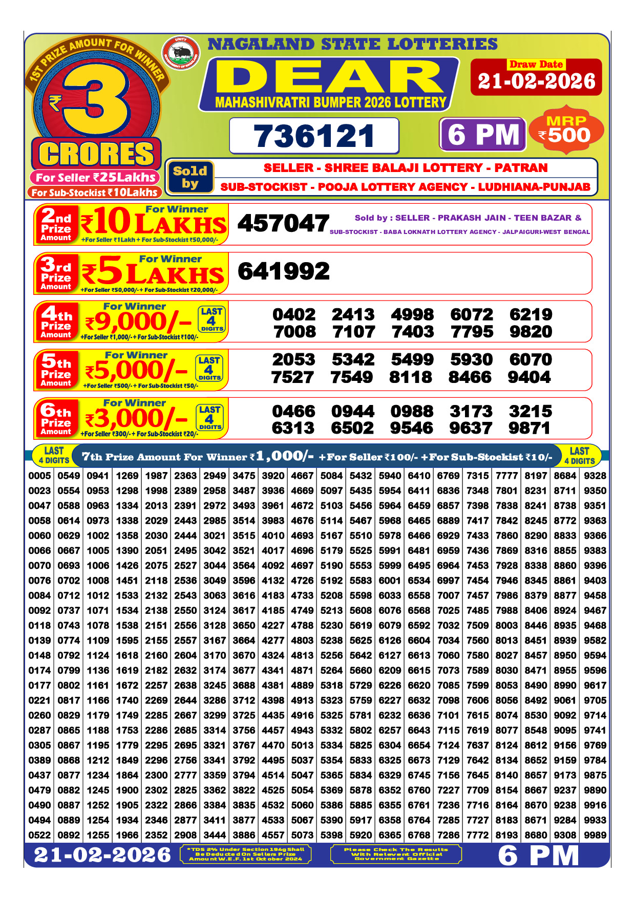 DEAR MAHASHIVRATRI BUMPER 2026 21 February 2026 তারিখে অফিসিয়ালভাবে প্রকাশিত হয়েছে। এটি Government Approved Bumper Lottery Result। এখানে আপনি সম্পূর্ণ রেজাল্ট শিট দেখতে পারবেন এবং অফিসিয়াল PDF ডাউনলোড করতে পারবেন।