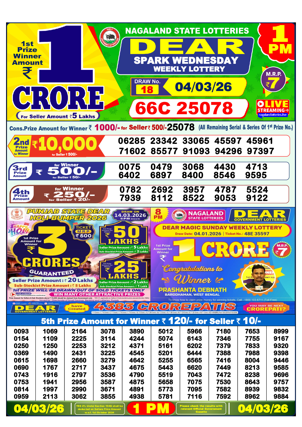 published on 04 March 2026. Download the official lottery result PDF below.