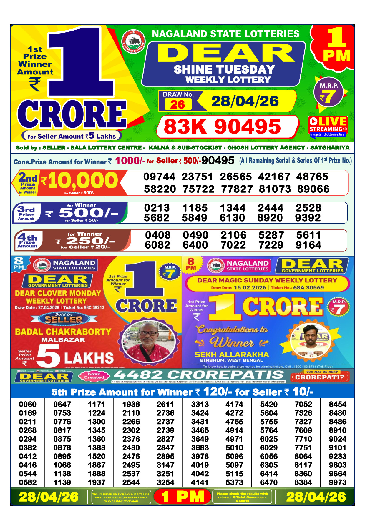 published on 28 April 2026. Download the official lottery result PDF below.